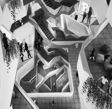 In the architectural works presented here, space is treated as a set of relationships rather than a sequence of isolated rooms. Controlled openness, shared territories, sectional overlaps, and clear movement paths are used to allow occupation to develop according to users’ needs rather than fixed prescriptions. Visual continuity connects areas without collapsing their differences, preserving privacy without isolation and enabling gathering without crowding. Light, sectional layering, and calibrated voids organize subtle gradients of interaction, giving each place its own intensity rather than a prescribed label. Circulation is conceived as an active spatial field rather than residual space between functions. Environmental moderation is achieved through architectural depth, shading, and filtered daylight rather than mechanical add-ons. The work does not pursue iconic form; instead, it develops from the interactions between volumes, boundaries, and the everyday rhythms of inhabitation.