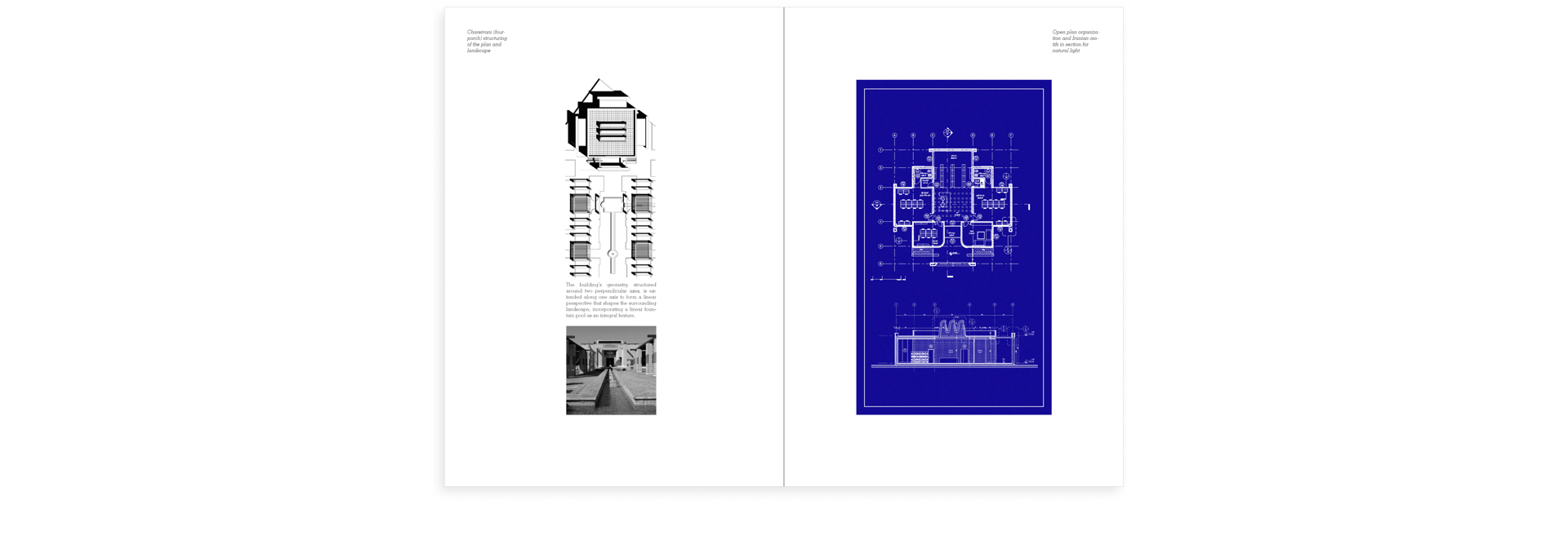 To mitigate harsh environmental conditions, the library adopts a solid, inward-looking structure with minimal openings, echoing the robust forms of traditional Iranian desert architecture. This solidity preserves thermal comfort and shields occupants from heat, glare, and dust storms. At its heart, the layout draws inspiration from two iconic Persian typologies: the chartaqi and char-eivani. These enclosed, symmetrical spaces provide a sense of protection, contemplation, and adaptability, allowing the library to accommodate diverse uses over time.